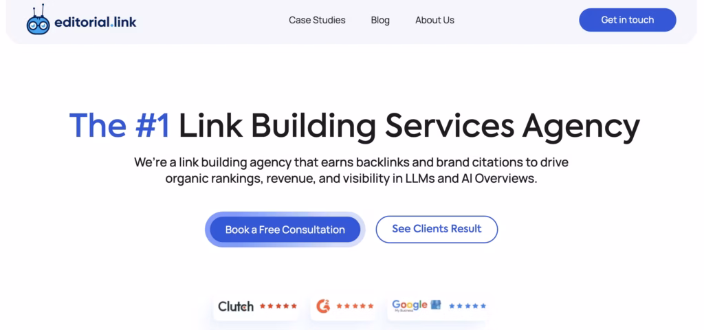 Editorial.Link boasts a 5/5 rating on both G2 and Clutch.